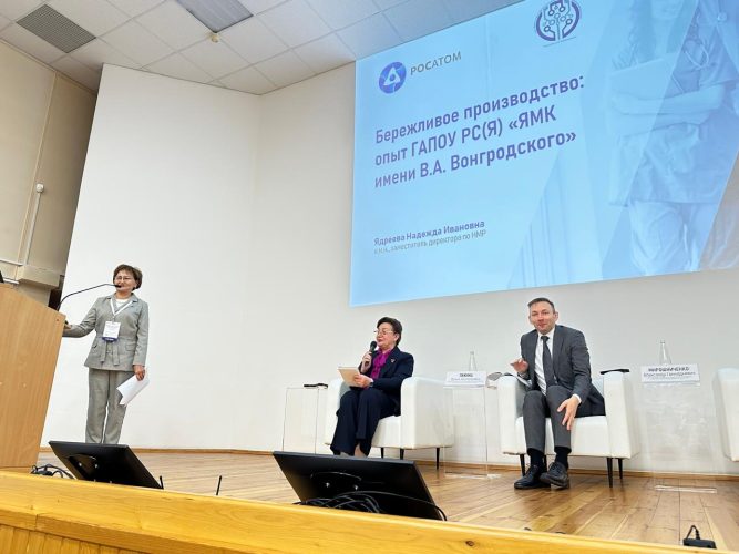 На II Всероссийской научно-практической конференции «Специалисты среднего звена в медицине и фармации» в секции «Система менеджмента качества в образовательных организациях» успешно выступила заместитель директора по научно — методической работе Якутского медицинского колледжа имени В.А.Вонгродского Ядреева Надежда Ивановна с докладом «Бережливое производство: опыт Якутского медицинского колледжа». Акцент сделан на межведомственные сквозные проекты, на воспитание здоровой бережливой личности по направлению «Медицина» в республике. Доклад отмечен как лучшая практика работы по бережливому производству и вызвал большой интерес среди сообщества медицинских колледжей России.